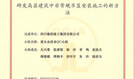 为推动科技创新工作,助力集团高质量发展,四川能投建工集团二分公司围绕项目建设方面的重难点进行技术攻关,成功攻克简阳标准厂房项目1#楼塔楼非常规吊篮安装难题,编制形成的《研发高...[详情]